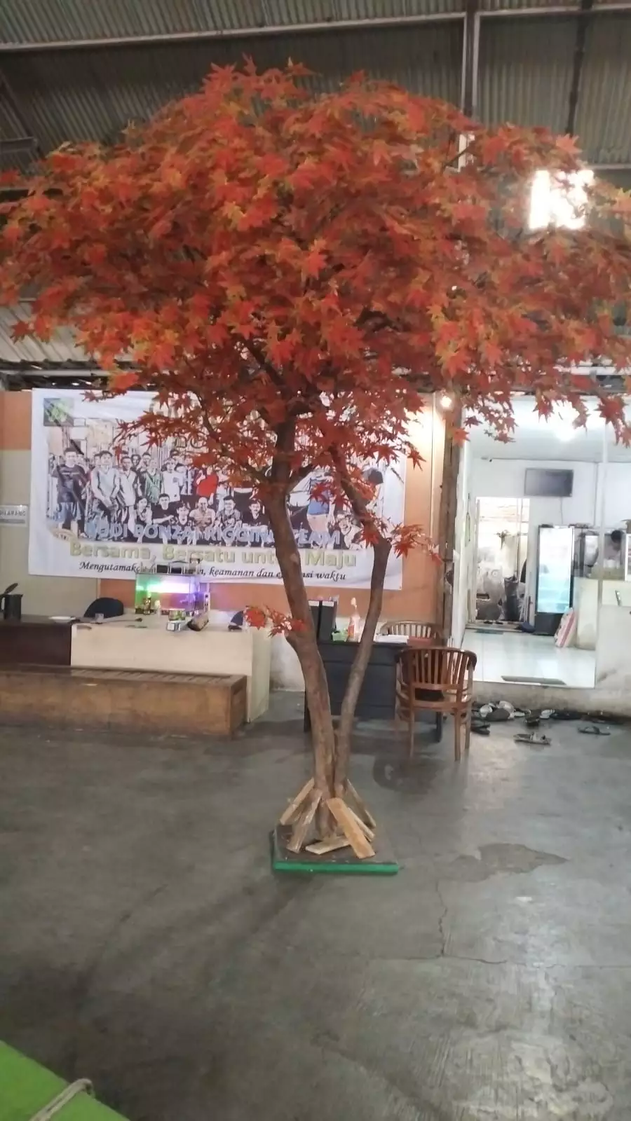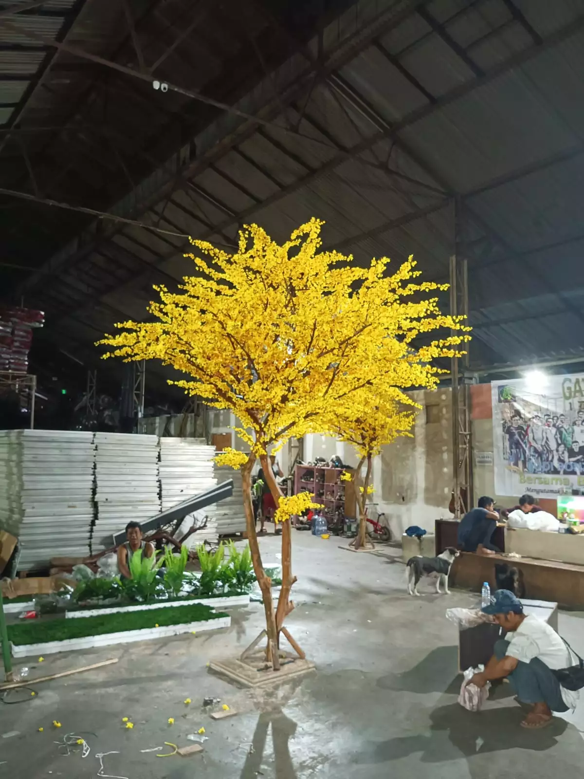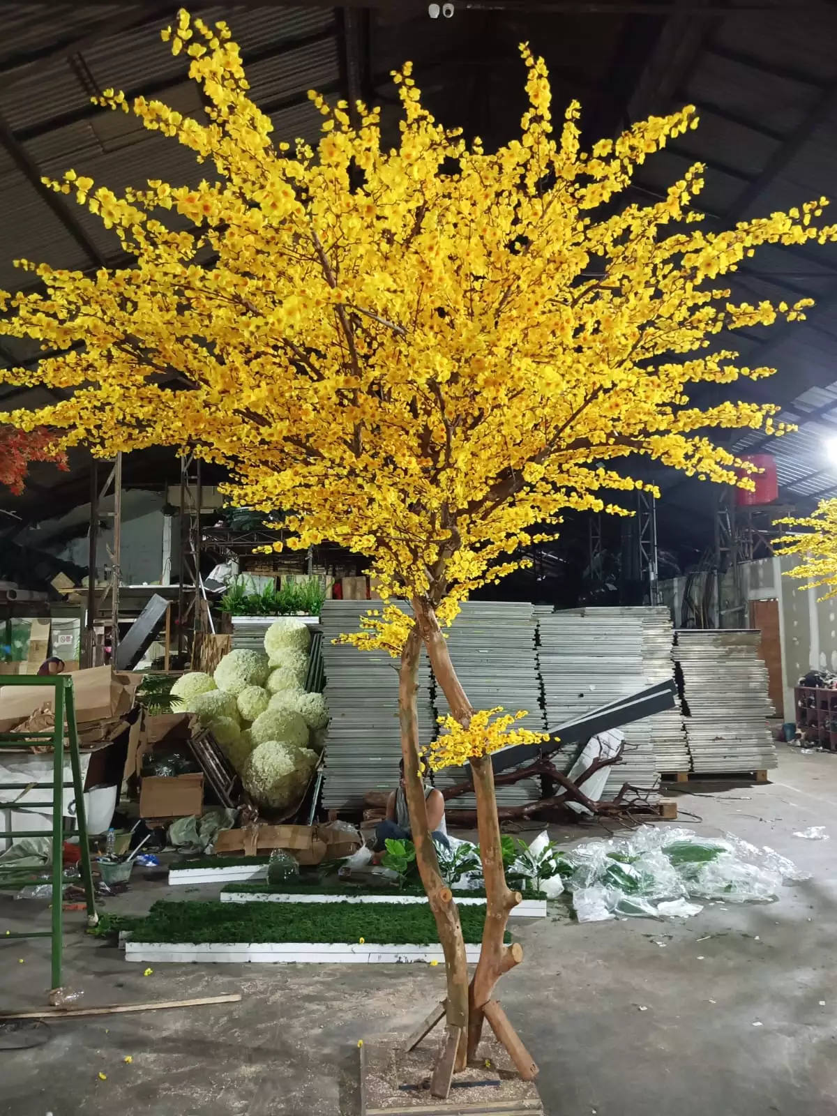The project includes an extensive range of stunning artificial trees and garden elements, such as vibrant yellow sakura trees, striking red maple trees, large bonsai trees, and a 20-meter-long custom planter box installation. To ensure a seamless installation process, all components are engineered using a PnP Lock (Plug and Play) system, complete with coded assembly parts. This allows the on-site team to effortlessly reassemble the trees without the need to build everything from scratch.